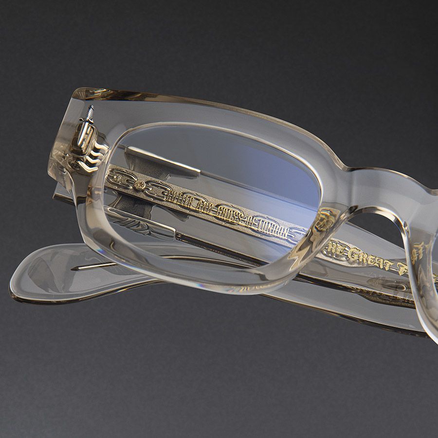 The Great Frog’s iconic metalwork reframes these square glasses with renegade roots. Hand cast from Sterling Silver, Dagger and Soaring Eagle frontal and temple pins disrupt the design. It’s crafted by hand to an old-school biker-style silhouette, and sculpted with weight-saving milling.
